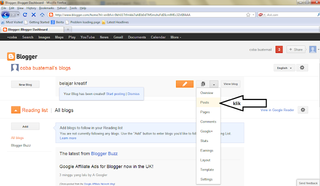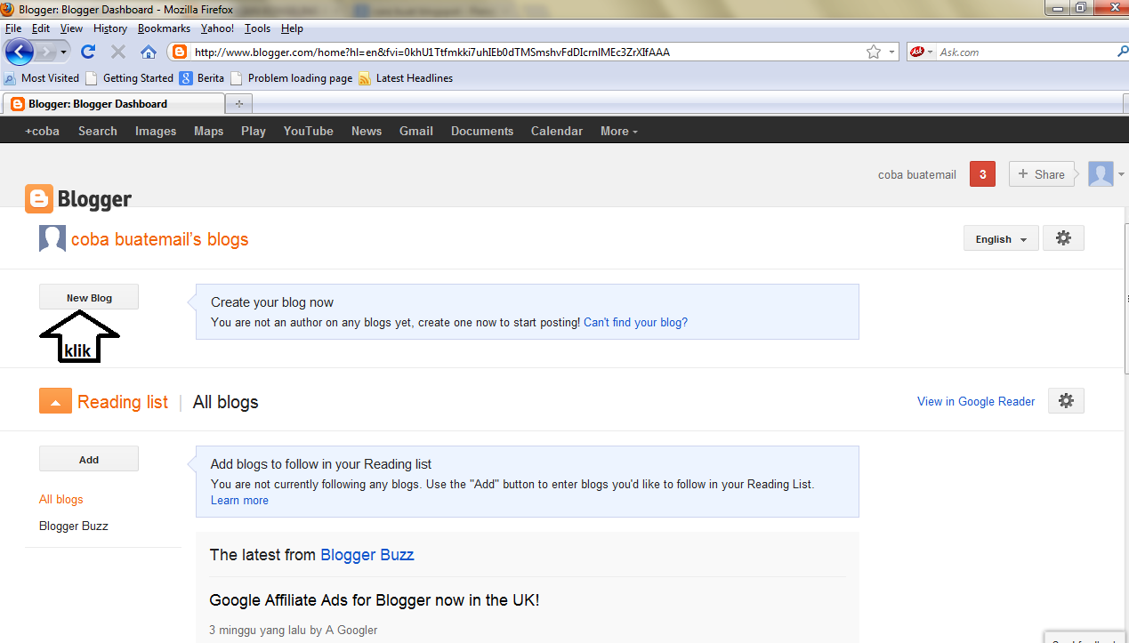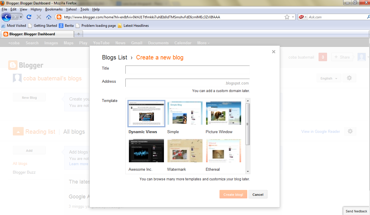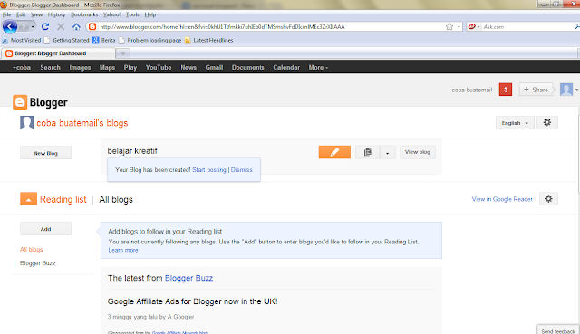 Banyak orang yang kesulitan membuat blog di blogspot.com, berikut caranya ;